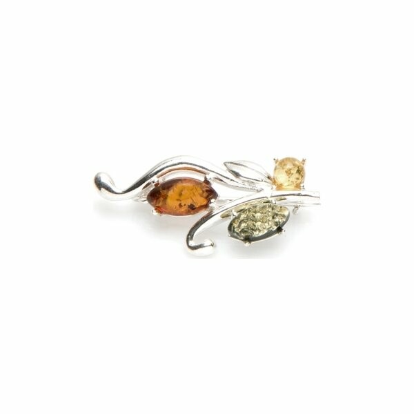 Pendentif en argent rhodié, quartz rose, améthyste et ambre