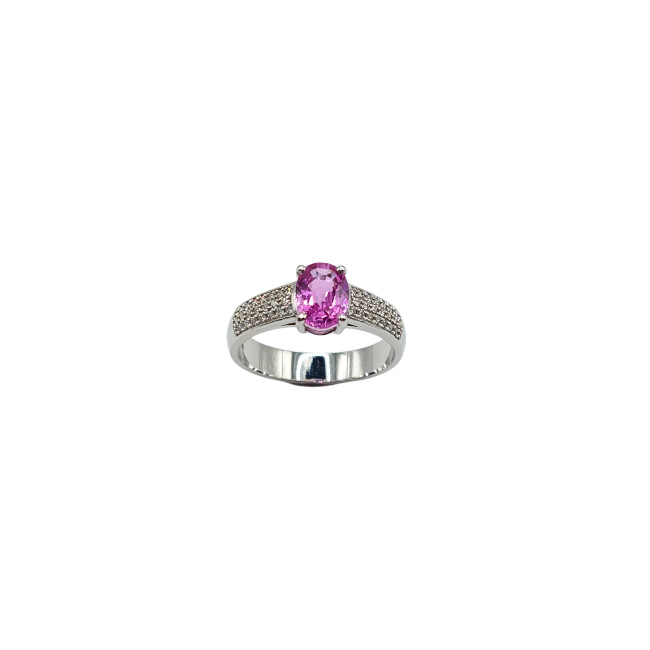 Bague Or Gris, Saphir Rose, Diamants
