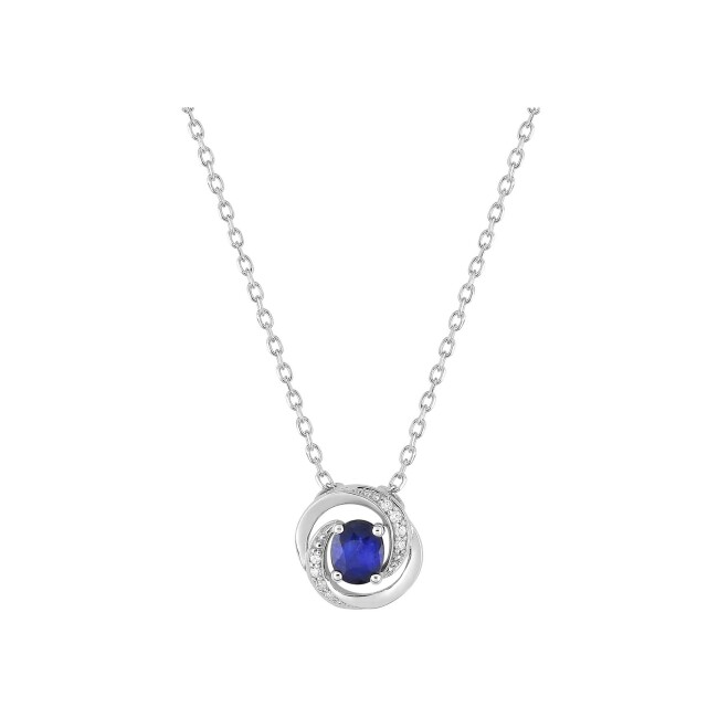 Collier en or blanc, saphir et oxyde de zirconium