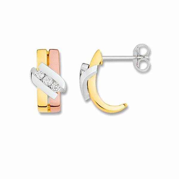 Boucles d'oreilles créoles en or jaune, or blanc, or rose et oxydes de zirconium