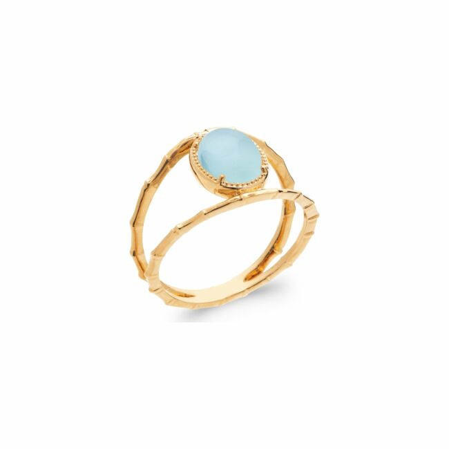 Bague en plaqué or et agate bleue