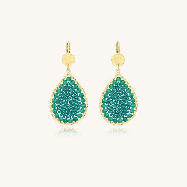 Boucles d'oreilles Sàntibé Bijoux Ysé en laiton, métal doré et perles vert émeraude