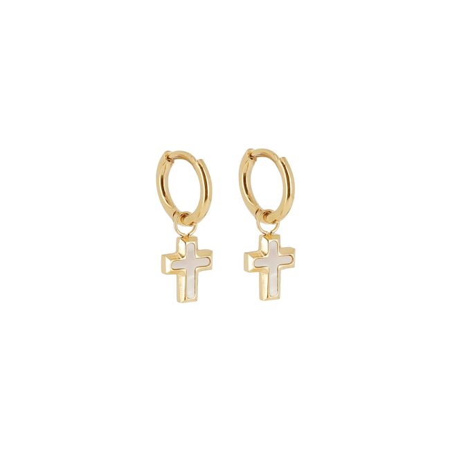 Mini boucles d’oreilles Zag en acier doré et nacre