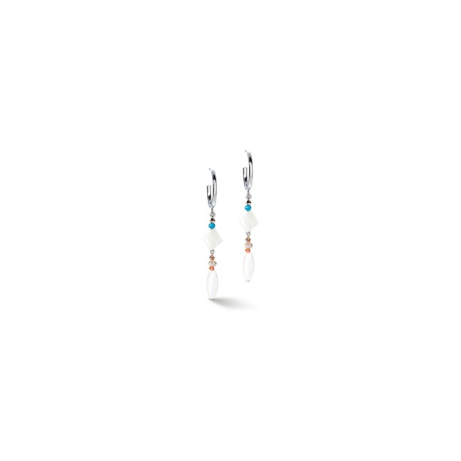 Boucles d'oreilles pendantes Cœur de Lion en acier, nacre, cristaux et verre