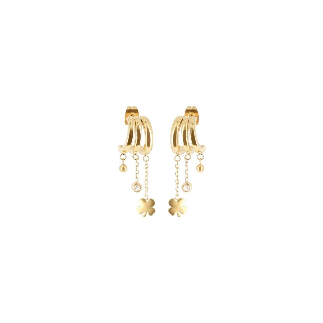 Boucles d'oreilles Zag en acier doré et oxyde de zirconium