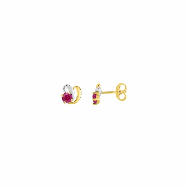 Puces d'oreilles en or jaune rhodié, rubis et oxydes de zirconium