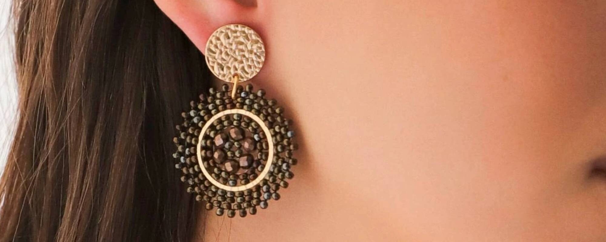 Boucles d'oreilles Sàntibé Bijoux Cancun en laiton, métal doré et perles noir