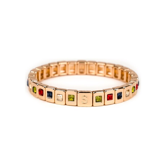 COLORCRISTAL Bracelet Simone à Bordeaux Colorcristal Carré Azur en métal doré émaillé