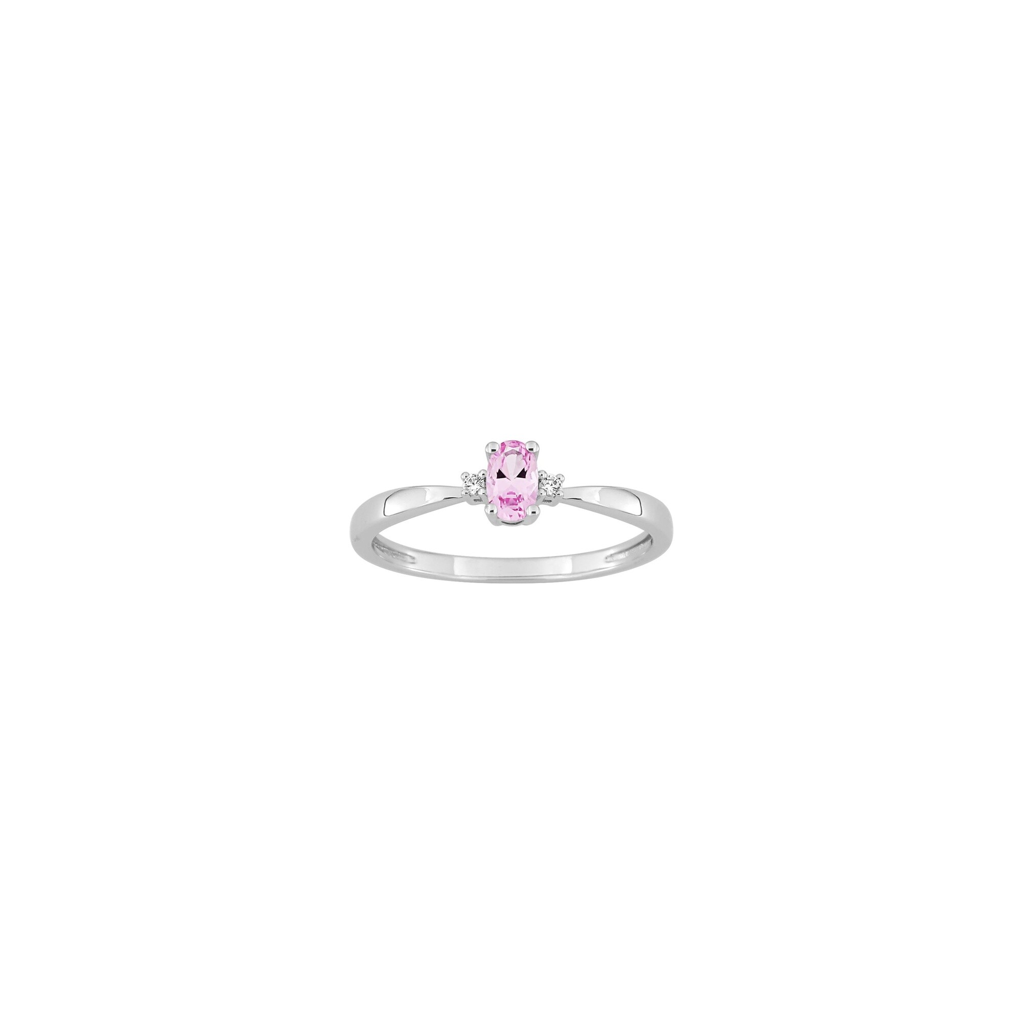 Bague en or blanc, diamant 0.02ct et saphir rose