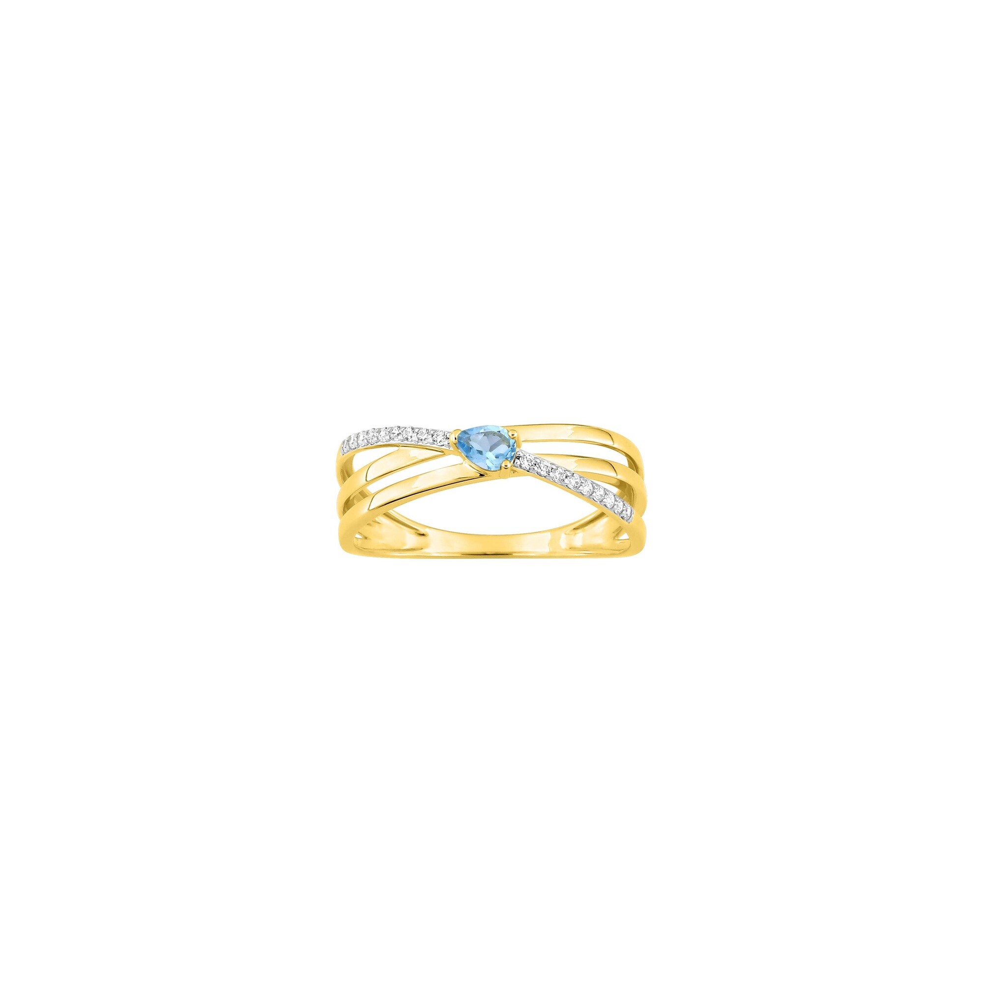 Bague en or jaune, oxyde de zirconium et topaze bleue