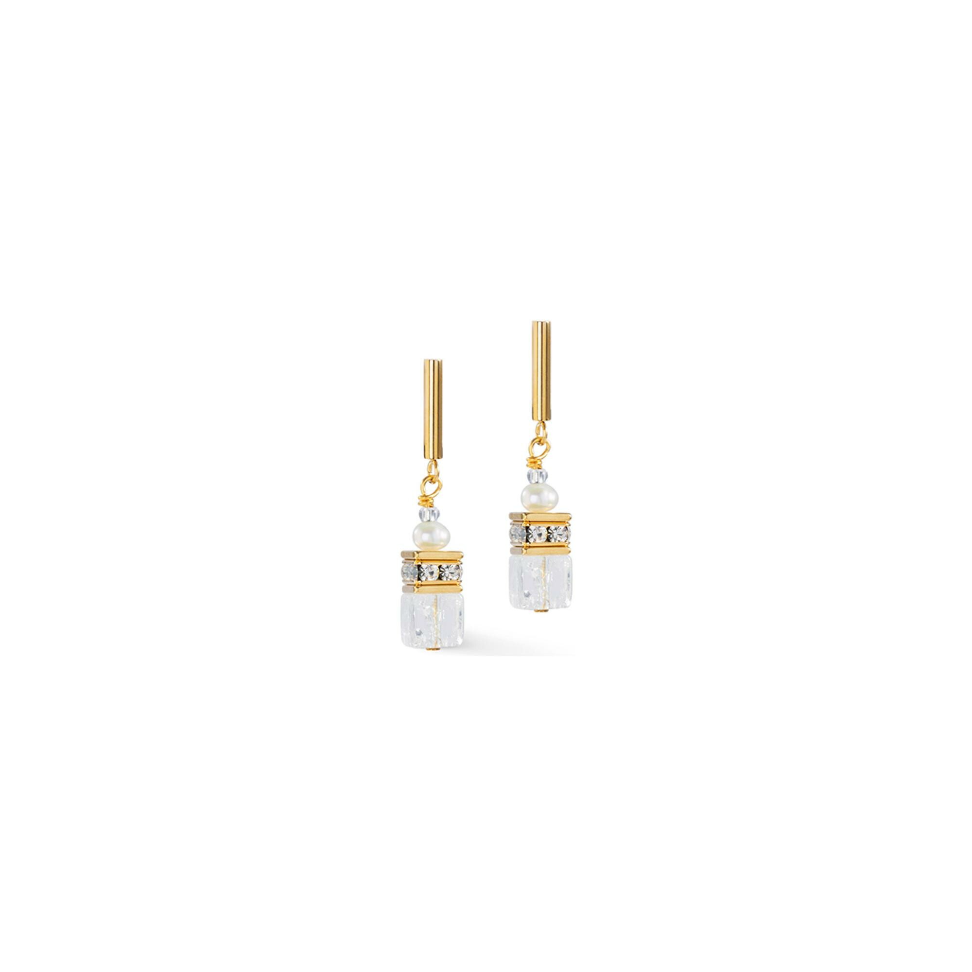Boucles d'oreilles Coeur de Lion GeoCUBE Fusion Precious Pearl Mix en acier doré, perle d'eau douce, cristal de roche et strass