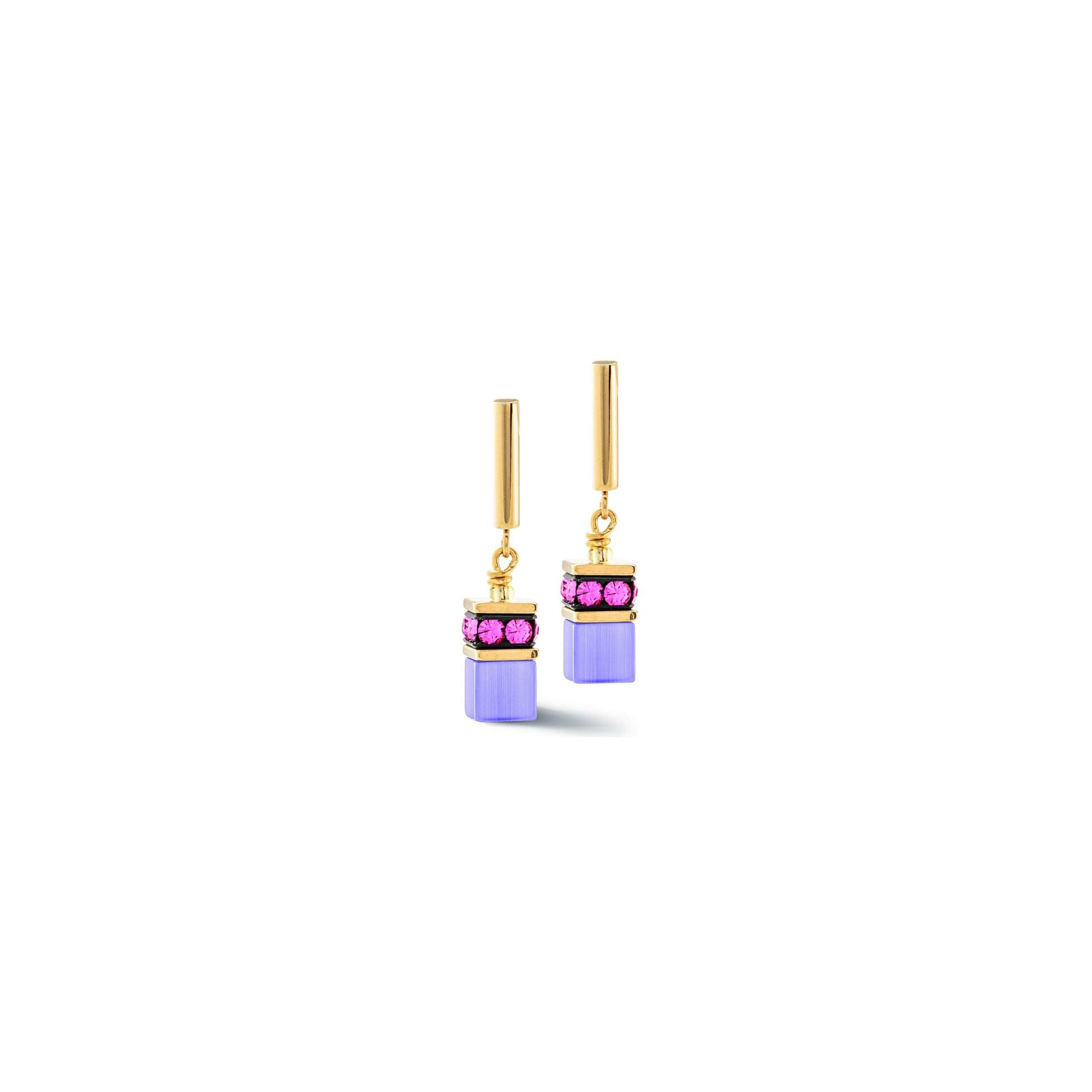 Boucles d'oreilles Coeur de Lion GeoCUBE Iconic Layer en acier doré, oeil de tigre et strass