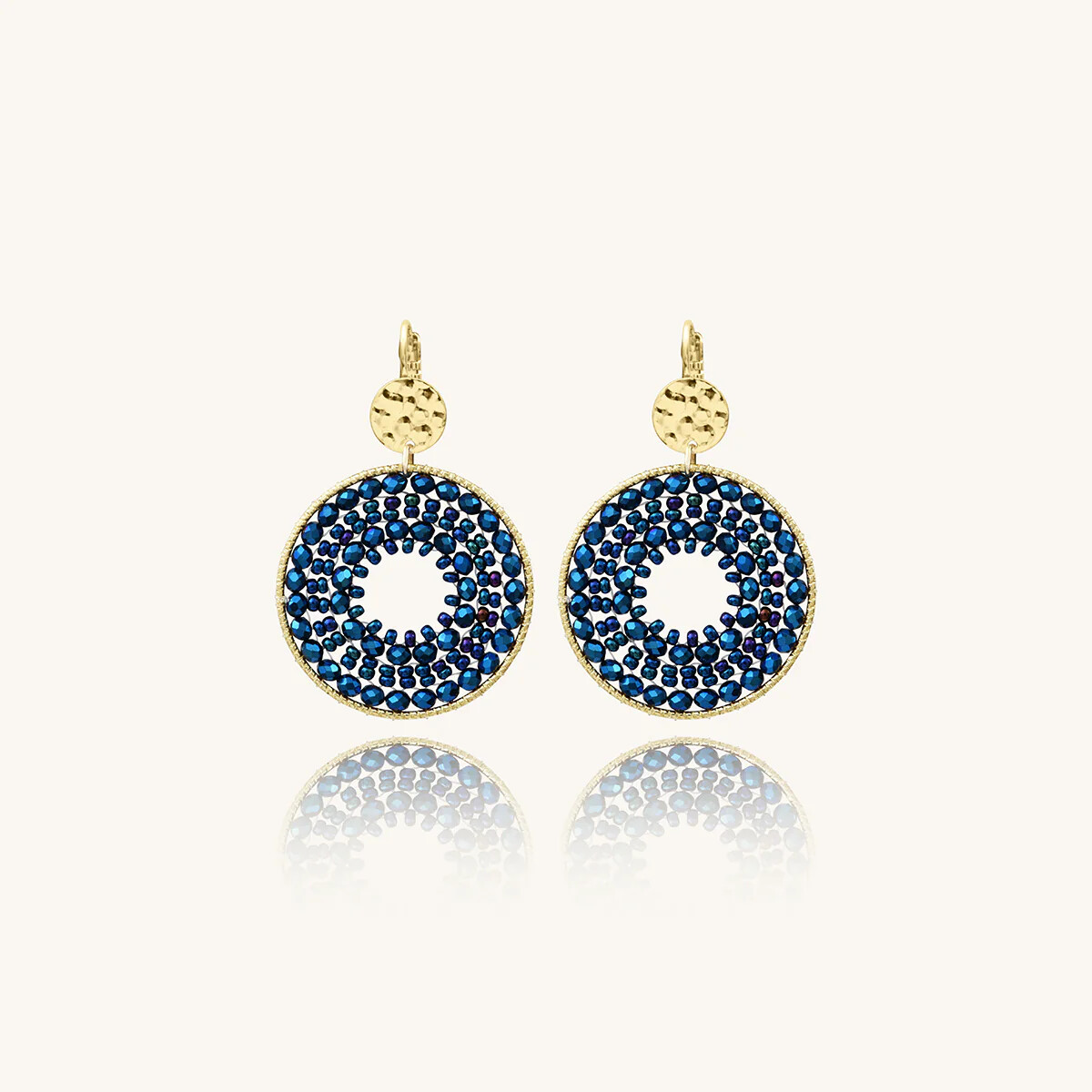 Boucles d'oreilles Sàntibé Bijoux Maxi Paradis en laiton, métal doré et perles bleu marine