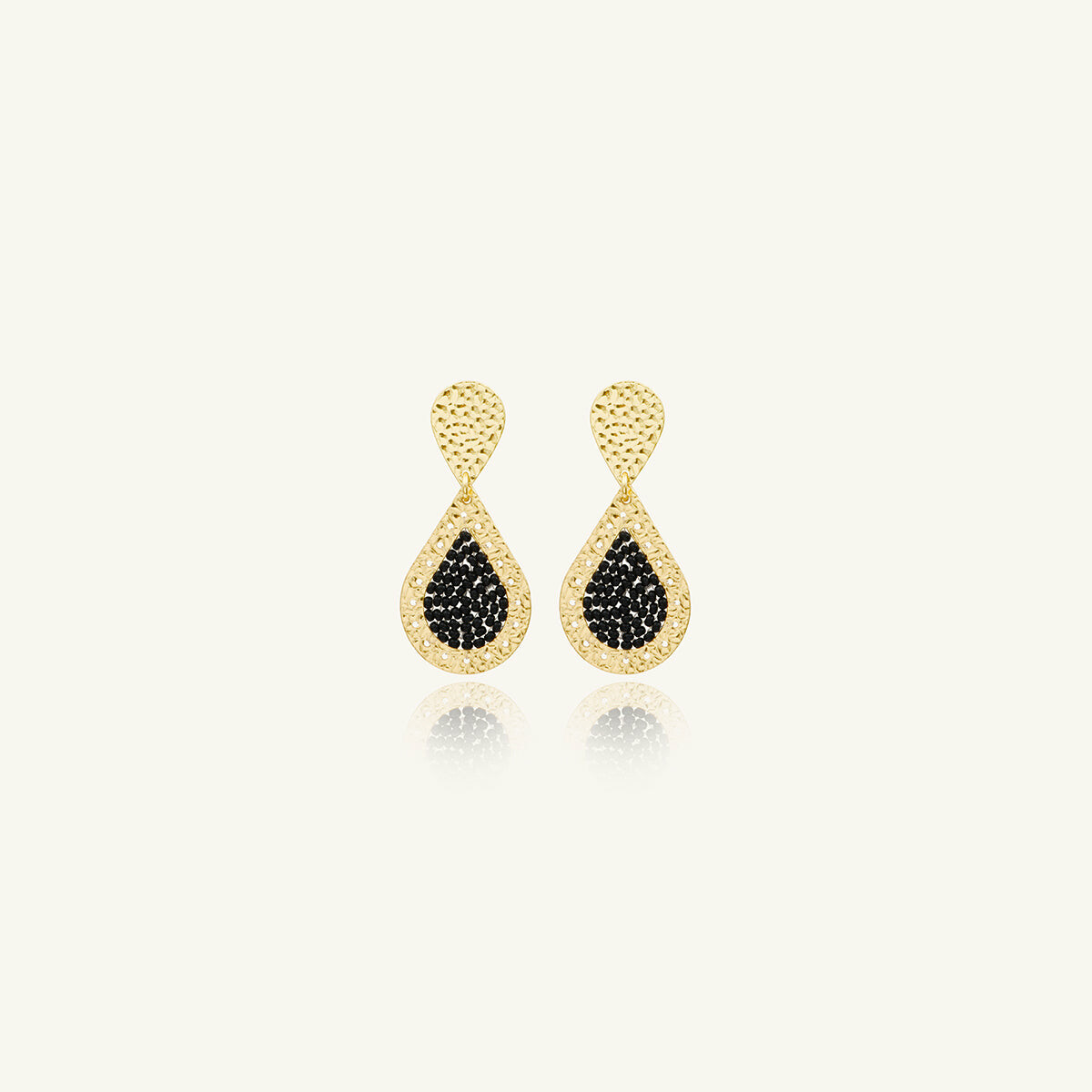 Boucles d'oreilles Sàntibé Bijoux Mini Baker en laiton, métal doré et perles noir