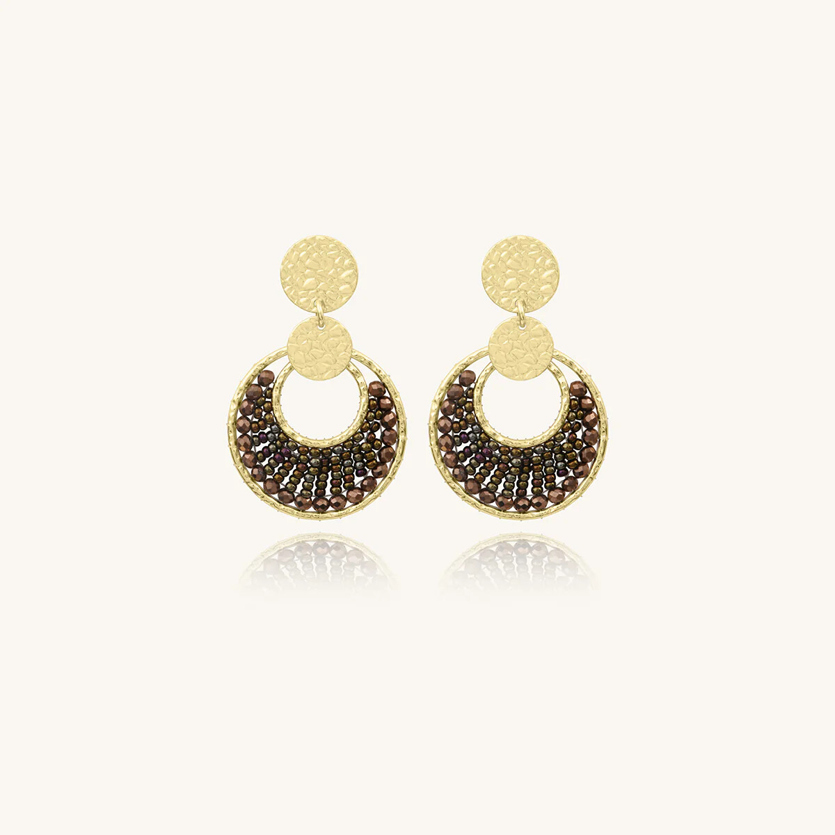 Boucles d'oreilles Sàntibé Bijoux Mini Luna en laiton, métal doré et perles noisette