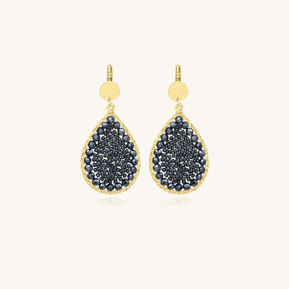 Boucles d'oreilles Sàntibé Bijoux Ysé en laiton, métal doré et perles gris
