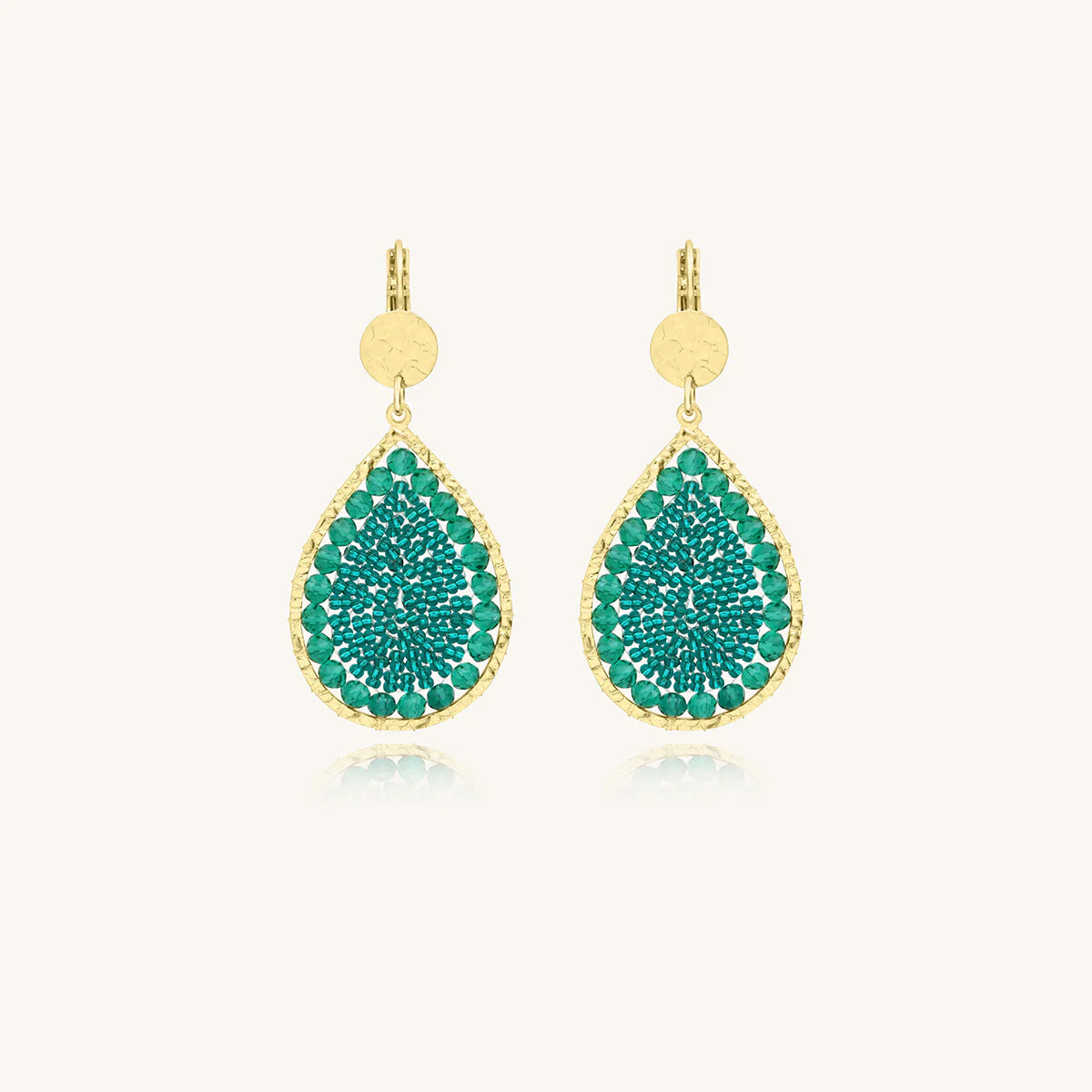 Boucles d'oreilles Sàntibé Bijoux Ysé en laiton, métal doré et perles vert émeraude