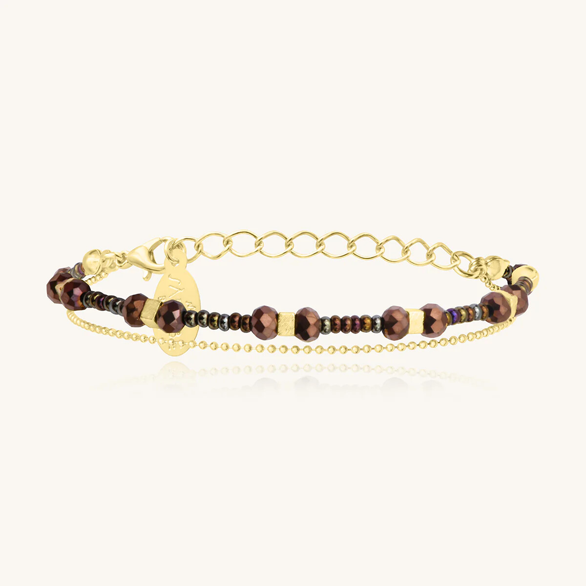 Bracelet Sàntibé Bijoux Divine en laiton, métal doré et perles noisette