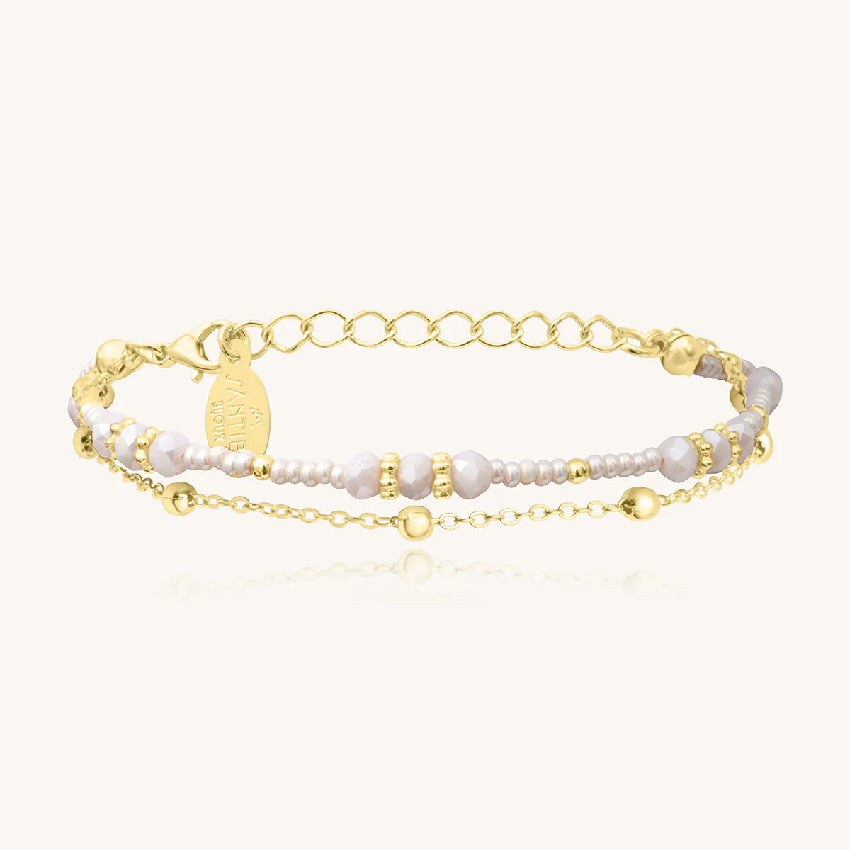 Bracelet Sàntibé Bijoux Divine en laiton, métal doré et perles sable