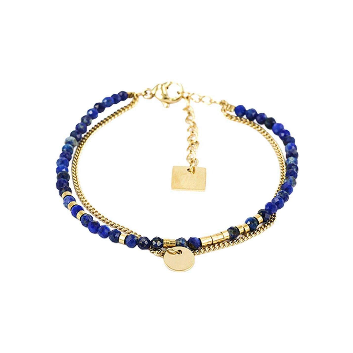 Bracelet Zag Apache en acier doré et lapis lazuli