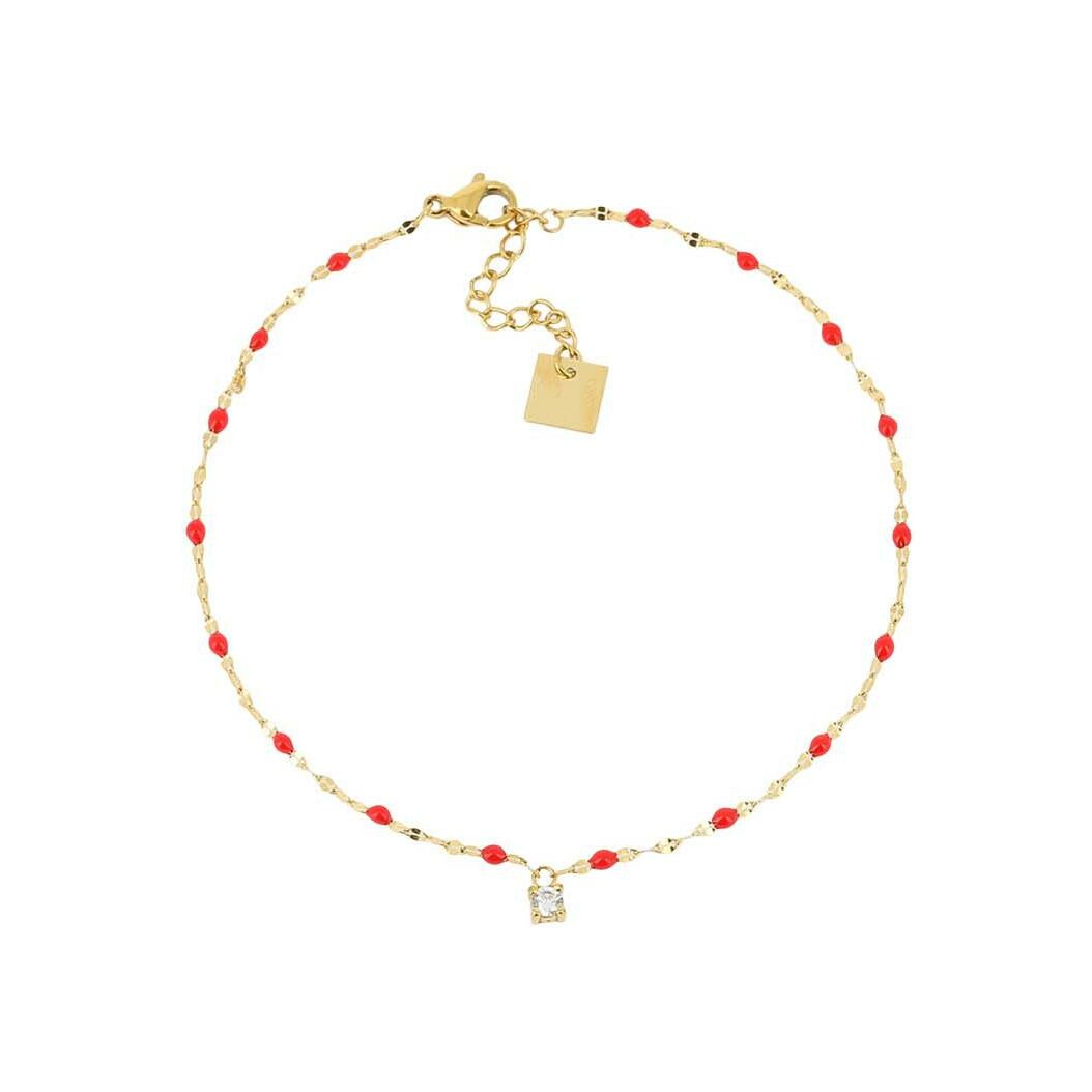 Chaîne de cheville Zag Poppy en acier doré, Rouge