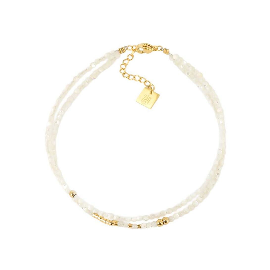 Chaîne de cheville Zag Zoly en acier doré et nacre