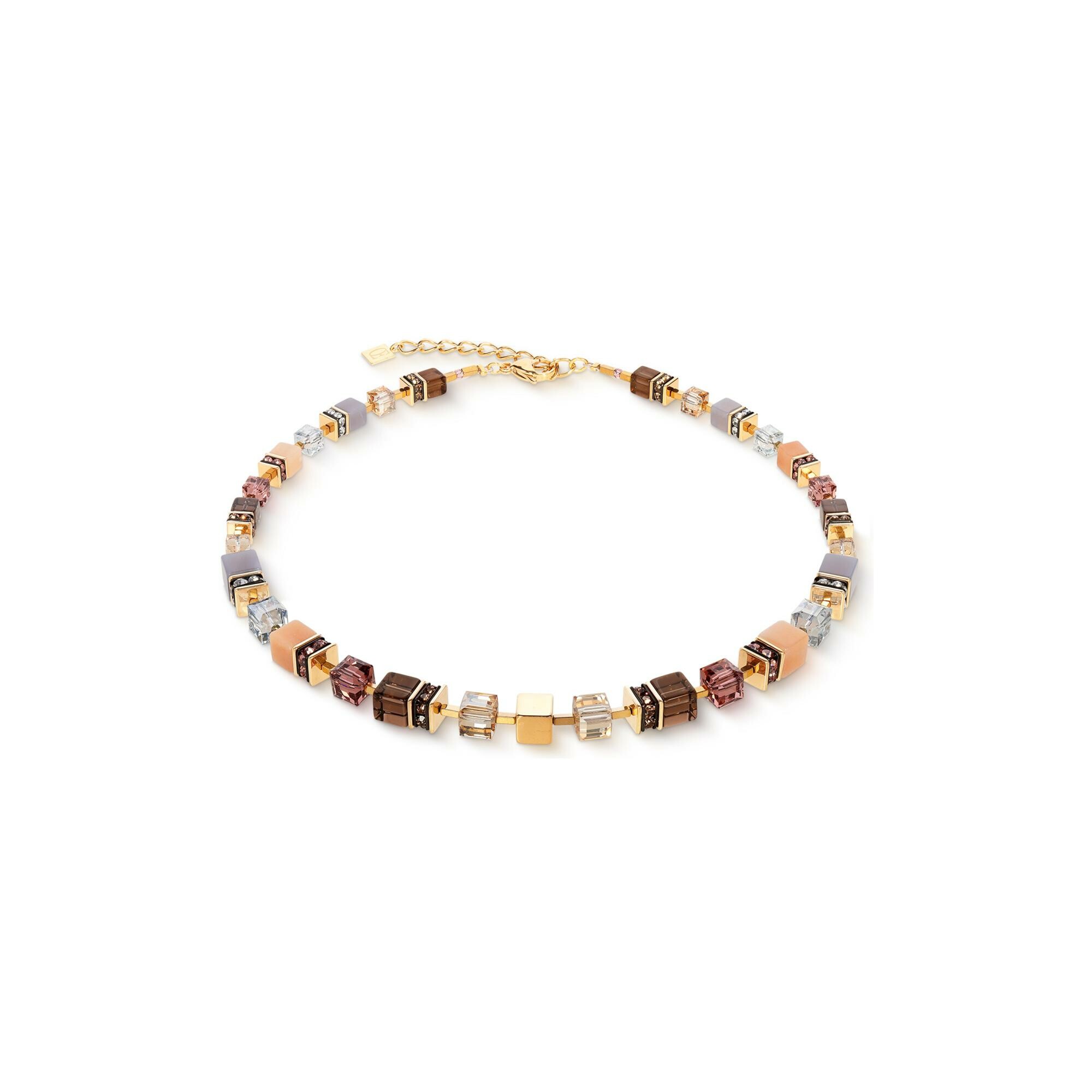 Collier Coeur de Lion GeoCUBE Precious en acier doré, oeil de tigre et cristaux Swarovski
