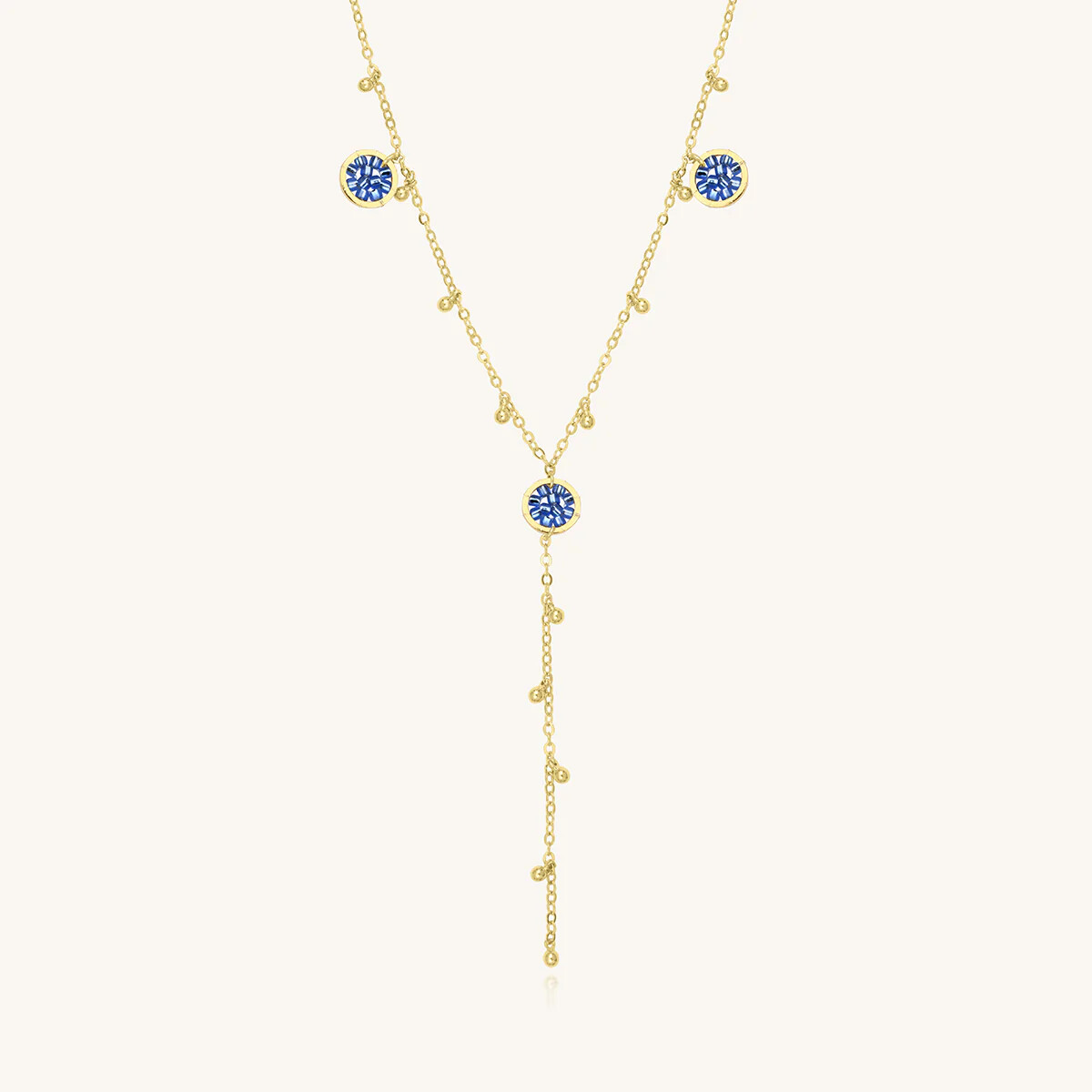 Collier Sàntibé Bijoux Donna en laiton, métal doré et perles céleste